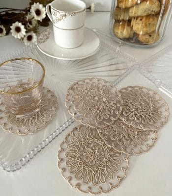 Model Doha | 6 Adet Fincan Yanı Sunum Peçetesi – Krem Gold Kokteyl Peçetesi